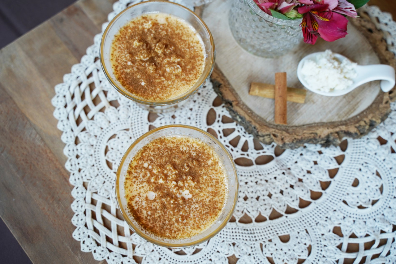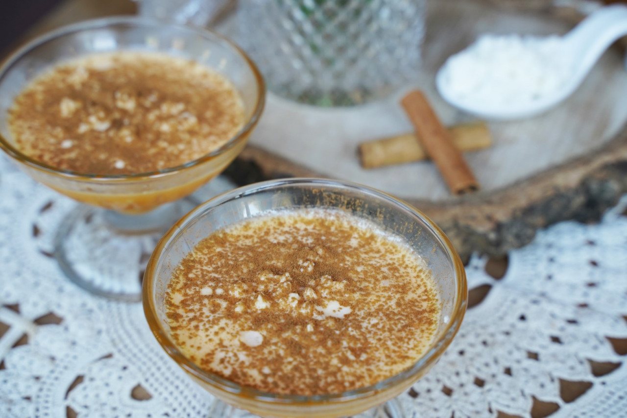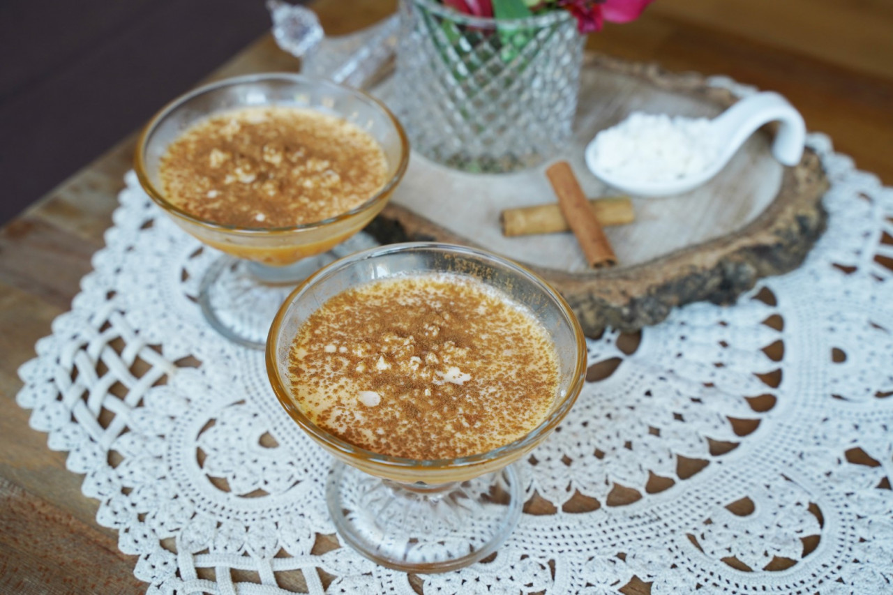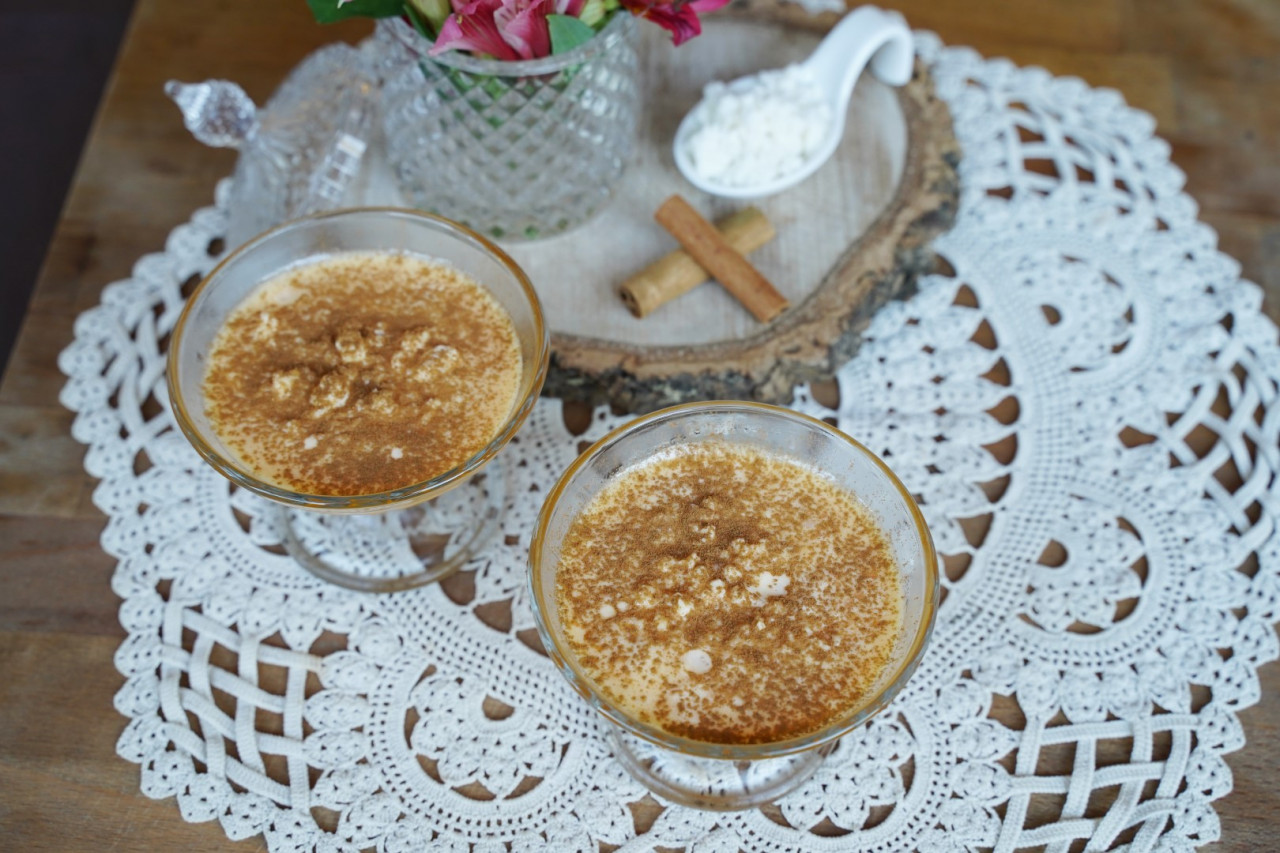 Depois de arrefecer é servido em cálices de cristal, eventualmente polvilhado com canela.